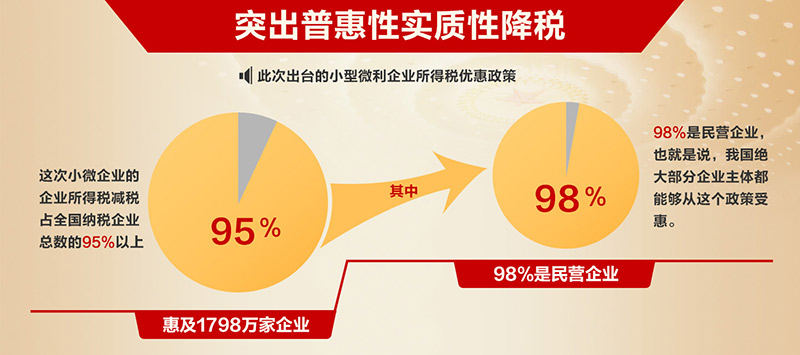 不僅是擴大了優(yōu)惠面,還提高了優(yōu)惠力度。稅率優(yōu)惠方面,按應(yīng)納稅所得額不同,分別采用所得稅優(yōu)惠稅率。其中,應(yīng)納稅所得額100萬元以下,稅負是5%,低于標準稅率20個百分點。應(yīng)納稅所得額是100萬—300萬元之間的,稅負是10%,低于標準稅率15個百分點。這些數(shù)字,實實在在,真金白銀,非常重要。
